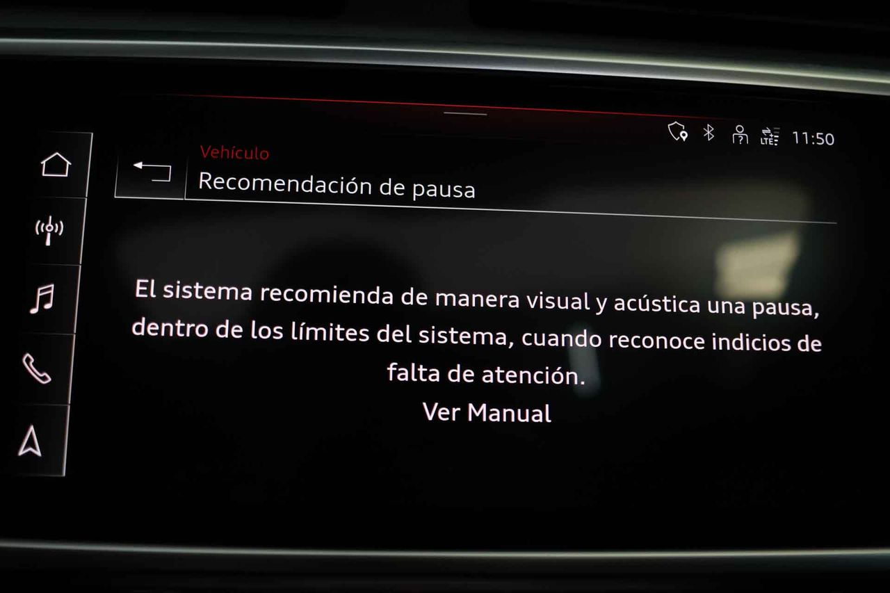 Airbag lateral de cortina delantero y trasero Airbag frontal del conductor inteligente, airbag frontal del acompañante desconectable y inteligente Airbags laterales delanteros Dos reposacabezas en asientos delanteros ajustables en altura, tres reposacabezas en asientos traseros ajustables en altura Cinturón de seguridad delantero en asiento conductor, acompañante y ajustable en altura con pretensores Cinturón de seguridad trasero en lado conductor, cinturón de seguridad trasero en lado acompañante, cinturón de seguridad trasero en asiento central de 3 puntos Preparación Isofix Resultado de pruebas de impacto Euro NCAP :, puntuación global: 5,00, protección adultos: 93,00, protección niños: 85,00, protección peatones: 81,00, puntuación ayudas a la seguridad: 76,00, Versión evaluada: Audi A6 40 TDI Sportline SA y Fecha del test: 01 sep 2018 Sistema de alarma de colisión: activa los cinturones de seguridad y las luces de freno con asistencia de frenado, monitorización del conductor y frenado a baja velocidad aviso visual/ acústico Alerta de cambio de carril: activa la dirección Apertura compartimiento motor Sistema de frenado anti-multicolisión Seis airbags Conducción autónoma 1 y control de carril activo Sistemas eléctricos e híbridos