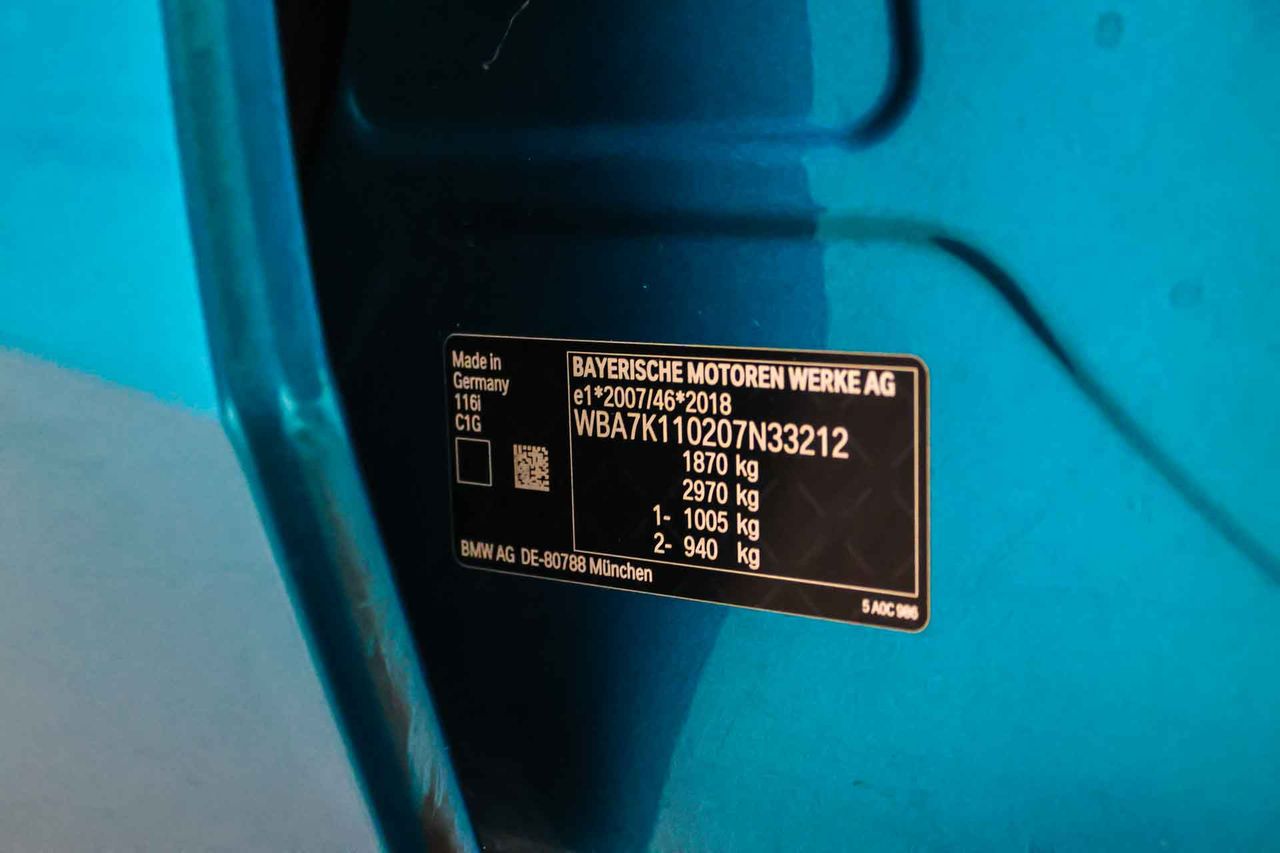 OBSERVACIONES Versión 116i Auto con 1.499 cc.cc. y 107CV de potencia ¡IVA DEDUCIBLE! PVP: 23.884 EUROS + IVA Precio TODO INCLUIDO (impuestos, gastos de transferencia, y garantía), y NO SUJETO a FINANCIACIÓN. Consulte y compare nuestras condiciones de FINANCIACIÓN exclusivas. MATRÍCULAS y NÚMEROS DE BASTIDOR VISIBLES. LIBROS DE MANTENIMIENTO e HISTÓRICOS COMPLETOS a su disposición. Posibilidad de recoger vehículo como parte de pago. (Este anuncio no es vinculante, puede contener errores, se muestra a título informativo y no contractual. Para cualquier duda, consultar con el concesionario. Gracias)