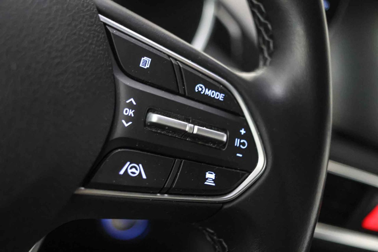 Airbag lateral de cortina delantero y trasero Airbag frontal del conductor, airbag frontal del acompañante desconectable Airbags laterales delanteros Dos reposacabezas en asientos delanteros ajustables en altura, tres reposacabezas en asientos traseros ajustables en altura, dos reposacabezas en la tercera fila de asientos ajustables en altura Cinturón de seguridad delantero en asiento conductor, acompañante y ajustable en altura con pretensores Cinturón de seguridad trasero en lado conductor con pretensores, cinturón de seguridad trasero en lado acompañante con pretensores, cinturón de seguridad trasero en asiento central de 3 puntos Cinturón seguridad tercera fila en lado conductor y lado acompañante Preparación Isofix Resultado de pruebas de impacto Euro NCAP :, puntuación global: 5,00, protección adultos: 94,00, protección niños: 88,00, protección peatones: 67,00, puntuación ayudas a la seguridad: 76,00, Versión evaluada: Hyundai Santa Fe 2.2 diesel 5 seat 5dr SUV y Fecha del test: 01 dic 2018 Encendido automático luces emergencia Sistema de alarma de colisión: activa las luces de freno con asistencia de frenado, sistema antiatropello peatones/ciclistas, monitorización del conductor y frenado a baja velocidad de 5 Km/h como mínimo aviso visual/ acústico, distancia programable, funciona por encima de 130 km/h / 78 mph, funciona por encima de 50 km/h / 30 mph y funciona por debajo de 50 km/h / 30 mph Alerta de cambio de carril: activa la dirección 200 y 124 Apertura compartimiento motor Control de estabilidad del remolque Sistema de frenado anti-multicolisión Seis airbags Conducción autónoma 1 y control de carril activo Sistemas eléctricos e híbridos