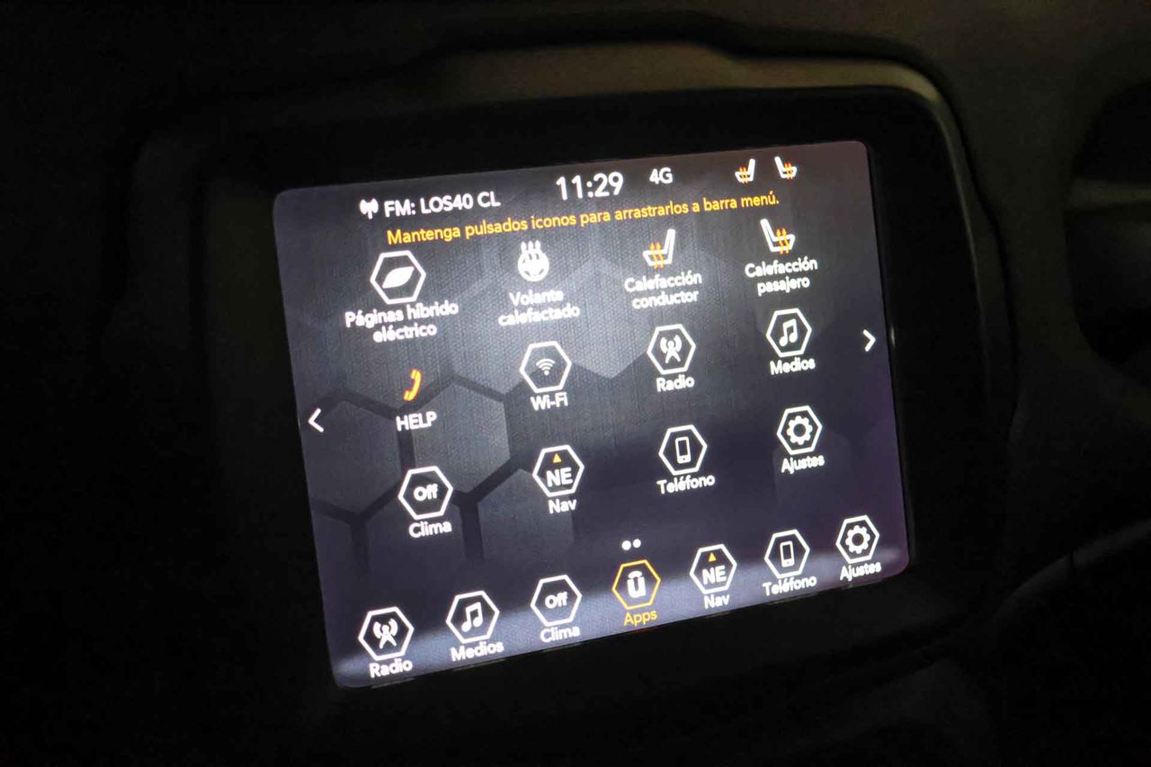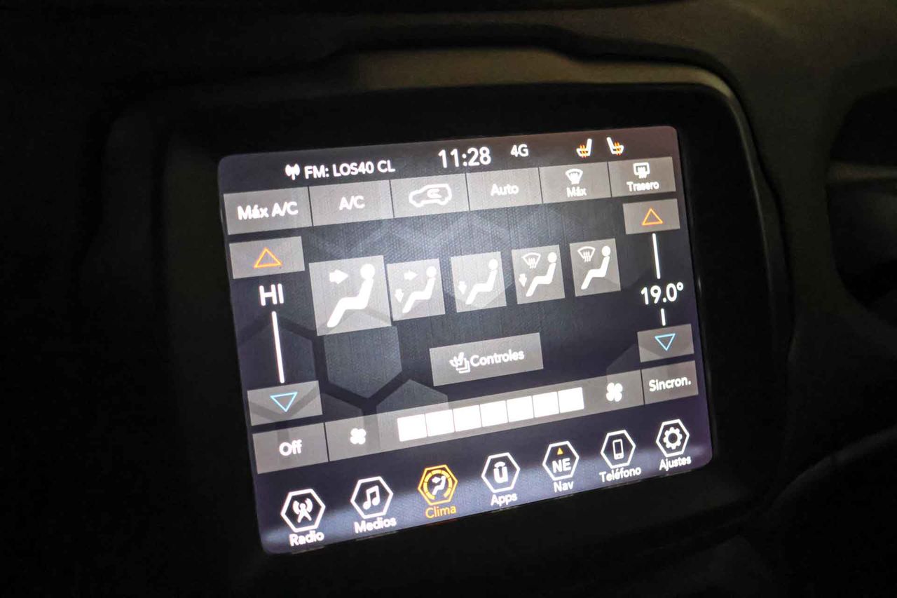 Airbag lateral de cortina delantero y trasero Airbag frontal del conductor inteligente, airbag frontal del acompañante desconectable y inteligente Airbags laterales delanteros Dos reposacabezas activos en asientos delanteros ajustables en altura, tres reposacabezas en asientos traseros ajustables en altura Cinturón de seguridad delantero en asiento conductor, acompañante y ajustable en altura con pretensores Cinturón de seguridad trasero en lado conductor, cinturón de seguridad trasero en lado acompañante, cinturón de seguridad trasero en asiento central de 3 puntos Preparación Isofix Resultado de pruebas de impacto Euro NCAP :, puntuación global: 3,0, protección adultos: 82,0, protección niños: 84,0, protección peatones: 55,0, puntuación ayudas a la seguridad: 58,0, Versión evaluada: Jeep Renegade 1.0 Limited 5-door OD LHD y Fecha del test: 04 dic 2019 Sistema de alarma de colisión: activa las luces de freno con asistencia de frenado, monitorización del conductor y frenado a baja velocidad aviso visual/ acústico, funciona por encima de 130 km/h / 78 mph y funciona por encima de 50 km/h / 30 mph Alerta de cambio de carril: activa la dirección Control de estabilidad del remolque Sistema de dirección dinámica Seis airbags Conducción autónoma 2 - automatización parcial y control de carril activo Sistemas eléctricos e híbridos