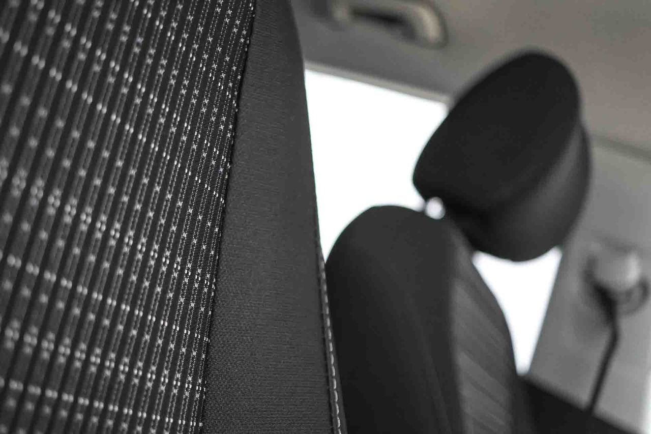 Cinco plazas ( 2+3 ) Asientos de tela (material principal) y de tela (material secundario) Apoyabrazos central delantero Asiento delantero del conductor individual, ajuste longitudinal manual y ajuste manual en altura con ajuste manual del respaldo, asiento delantero del acompañante individual y ajuste longitudinal manual con ajuste manual del respaldo Asientos traseros de tres plazas de tipo banco de orientación delantera con banqueta fija y respaldo abatible asimétrico