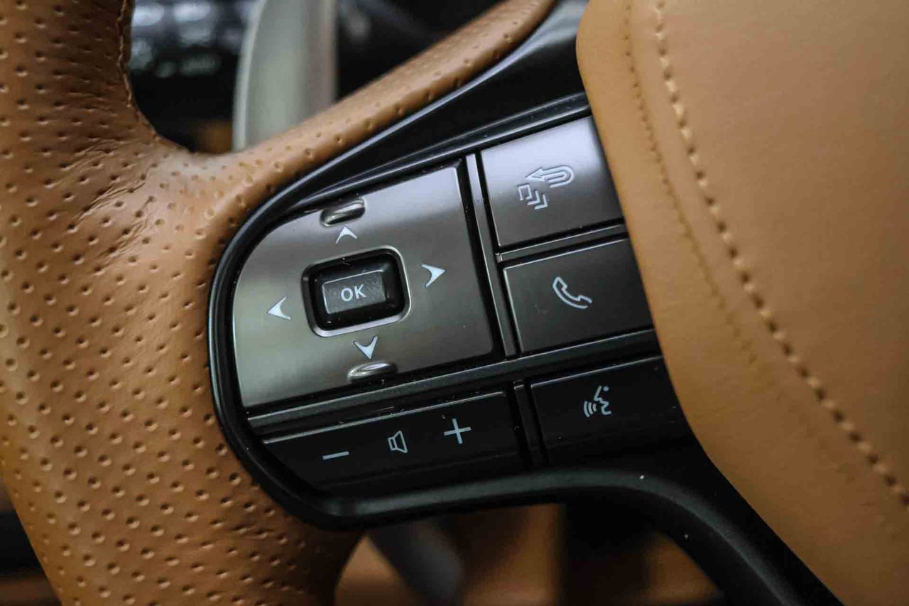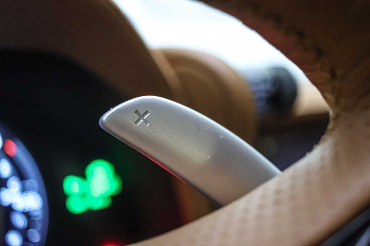 Volante multi-función térmico de aluminio y cuero ajustable eléctricamente, en altura y en profundidad Dirección asistida eléctrica con endurecimiento progresivo s/velocidad y desmultiplicación variable *Este anuncio no es vinculante, puede contener errores, se muestra a título informativo y no contractual. Para cualquier duda consultar con el concesionario, Gracias.