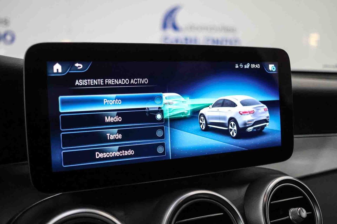Airbag lateral de cortina delantero y trasero Airbag frontal del conductor inteligente, airbag frontal del acompañante desconectable y inteligente Airbags laterales delanteros Dos reposacabezas en asientos delanteros ajustables en altura, tres reposacabezas en asientos traseros ajustables en altura Cinturón de seguridad delantero en asiento conductor y acompañante con pretensores Cinturón de seguridad trasero en lado conductor con pretensores, cinturón de seguridad trasero en lado acompañante con pretensores, cinturón de seguridad trasero en asiento central de 3 puntos Preparación Isofix Resultado de pruebas de impacto Euro NCAP :, puntuación global: 5,0, protección adultos: 95,0, protección niños: 89,0, protección peatones: 82,0, puntuación ayudas a la seguridad: 71,0, Versión evaluada: Mercedes Benz GLC 220d 4MATIC Exclusive 5dr SUV y Fecha del test: 02 dic 2015 Airbag de rodilla para el conductor Encendido automático luces emergencia Sistema de alarma de colisión: activa las luces de freno con asistencia de frenado, monitorización del conductor y frenado a baja velocidad de 7 Km/h como mínimo aviso visual/ acústico Apertura compartimiento motor Control de estabilidad del remolque Sistema de alerta sonora para el peatón Siete airbags Sistemas eléctricos e híbridos