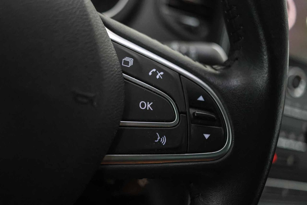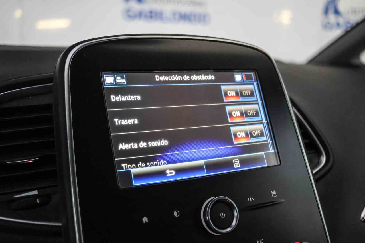 Airbag lateral de cortina delantero y trasero Airbag frontal del conductor inteligente, airbag frontal del acompañante desconectable y inteligente Airbags laterales delanteros Dos reposacabezas en asientos delanteros ajustables en altura, tres reposacabezas en asientos traseros ajustables en altura Cinturón de seguridad delantero en asiento conductor, acompañante y ajustable en altura con pretensores Cinturón de seguridad trasero en lado conductor, cinturón de seguridad trasero en lado acompañante, cinturón de seguridad trasero en asiento central de 3 puntos Preparación Isofix Resultado de pruebas de impacto Euro NCAP :, puntuación global: 5,00, protección adultos: 90,00, protección niños: 82,00, protección peatones: 67,00, puntuación ayudas a la seguridad: 59,00, Versión evaluada: Renault Scenic 1.5DCi 5dr MPV y Fecha del test: 31 ago 2016 Sistema de alarma de colisión: activa las luces de freno con asistencia de frenado, sistema antiatropello de peatones, monitorización del conductor y frenado a baja velocidad de 7 Km/h como mínimo aviso visual/ acústico Alerta de cambio de carril: Seis airbags