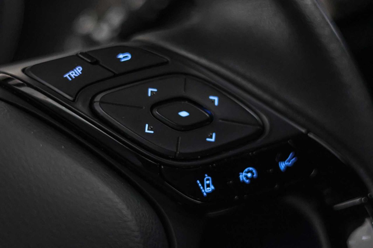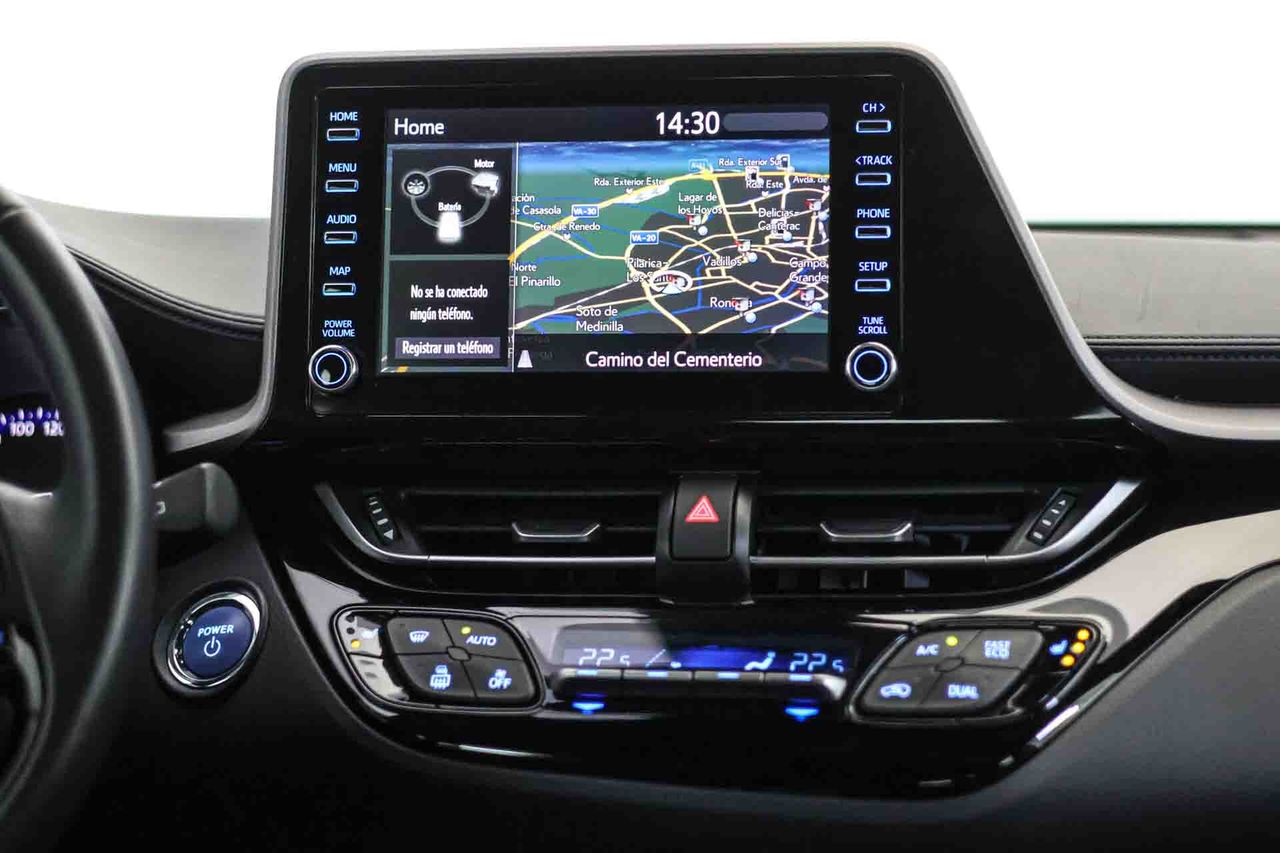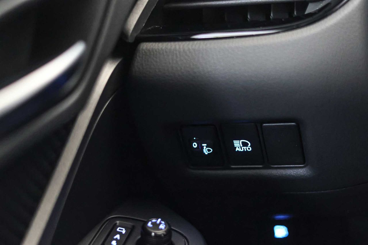 Airbag lateral de cortina delantero y trasero Airbag frontal del conductor inteligente, airbag frontal del acompañante desconectable y inteligente Airbags laterales delanteros y traseros Dos reposacabezas en asientos delanteros ajustables en altura, tres reposacabezas en asientos traseros ajustables en altura Cinturón de seguridad delantero en asiento conductor, acompañante y ajustable en altura con pretensores Cinturón de seguridad trasero en lado conductor con pretensores, cinturón de seguridad trasero en lado acompañante con pretensores, cinturón de seguridad trasero en asiento central de 3 puntos Preparación Isofix Sensor de adelantamiento Resultado de pruebas de impacto Euro NCAP :, puntuación global: 5,00, protección adultos: 95,00, protección niños: 77,00, protección peatones: 76,00, puntuación ayudas a la seguridad: 78,00, Versión evaluada: Toyota C-HR Hybrid 5dr HA y Fecha del test: 01 mar 2017 Airbag de rodilla para el conductor Sistema de alarma de colisión: activa las luces de freno con asistencia de frenado, sistema antiatropello peatones/ciclistas y delantero y trasero de 0 Km/h como mínimo aviso visual/ acústico Alerta de cambio de carril: activa la dirección Control de estabilidad del remolque Siete airbags Conducción autónoma 1 Sistemas eléctricos e híbridos