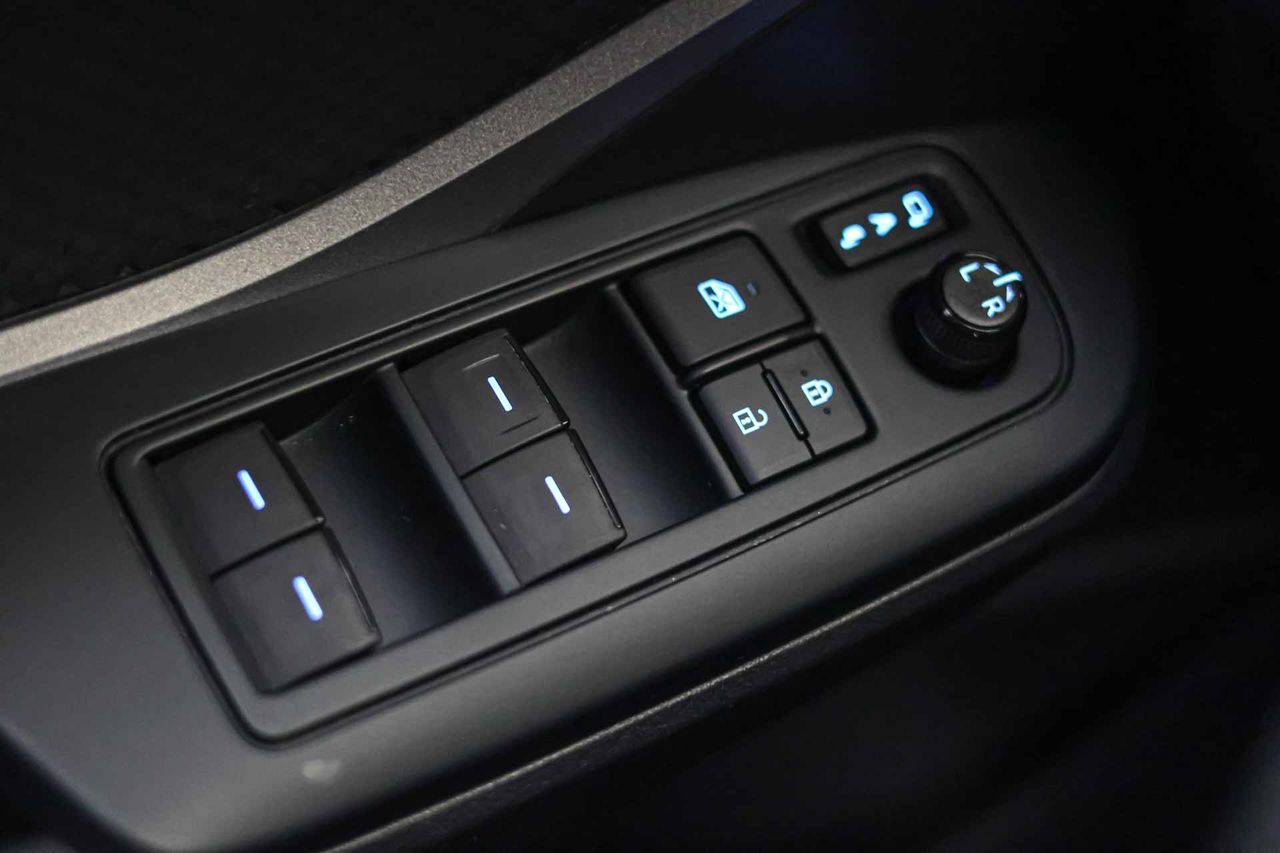 Retrovisor interior con oscurecimiento progresivo automático Retrovisor exterior del conductor y acompañante negro/gris (no pintado) con ajuste eléctrico desempañable con intermitente integrado Retrovisores plegables Luneta trasera fija con limpialuneta trasera intermitente Limpiaparabrisas delantero con sensor de lluvia Elevalunas eléctricos delanteros y traseros con dos de ellos de un solo toque Cristal trasero oscurecido en el lateral trasero